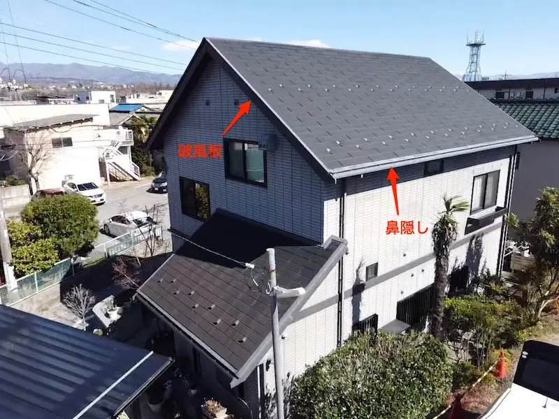 屋根側面にある板材が「破風板」と「鼻隠し」です!