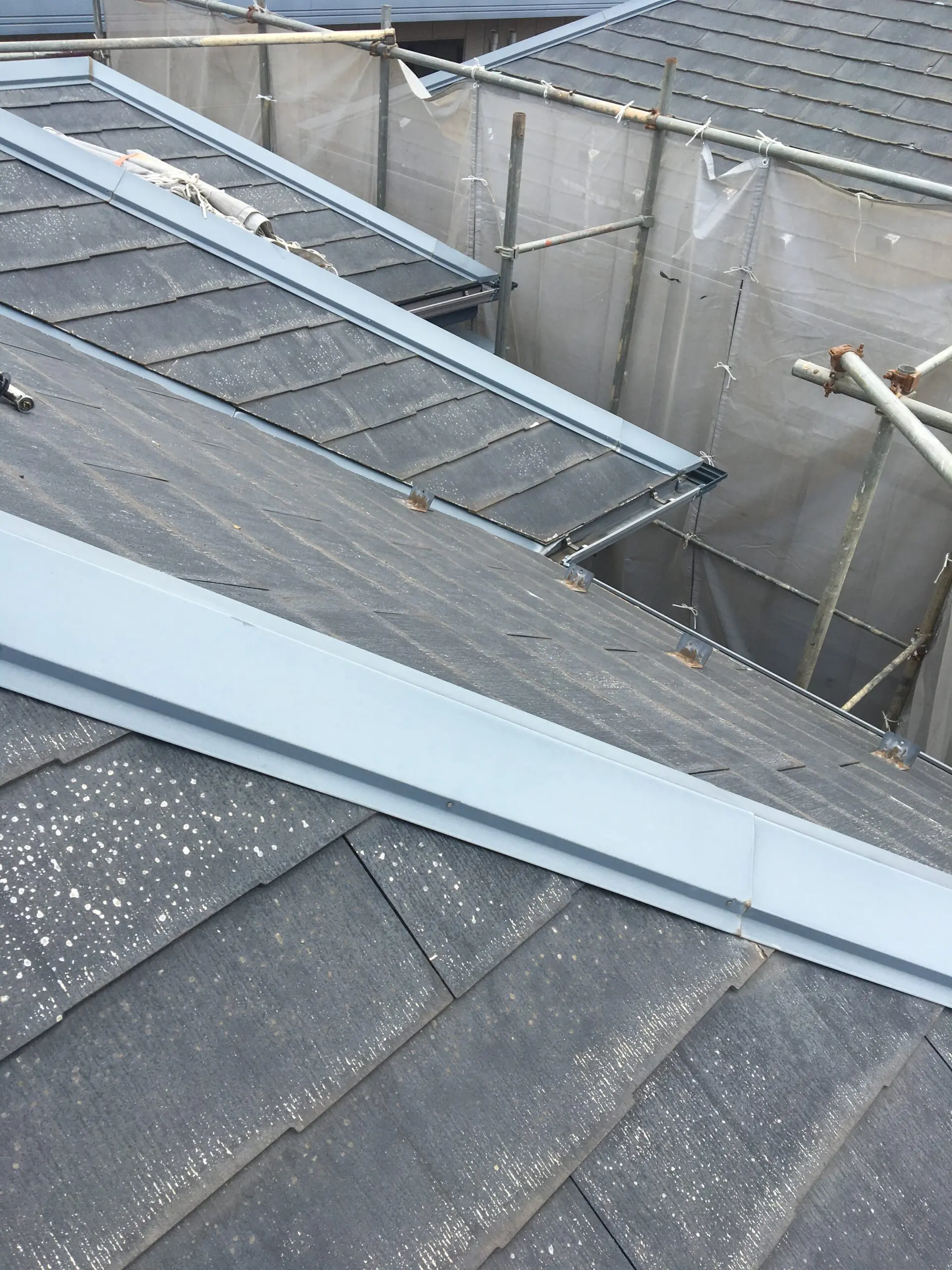 写真をご覧頂けると分かりやすいのですが、今回もコロニアル屋根で、劣化の進行がなかなかの物です。