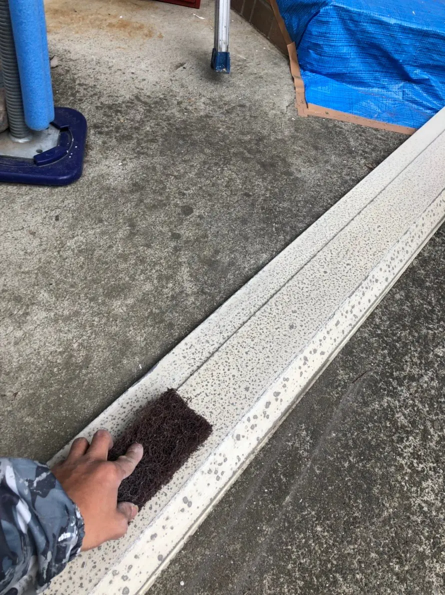出来る限り傷を付けないように作業を進めていくのですが、塗り替えを行う際は少し傷を付ける事が重要でもあります。