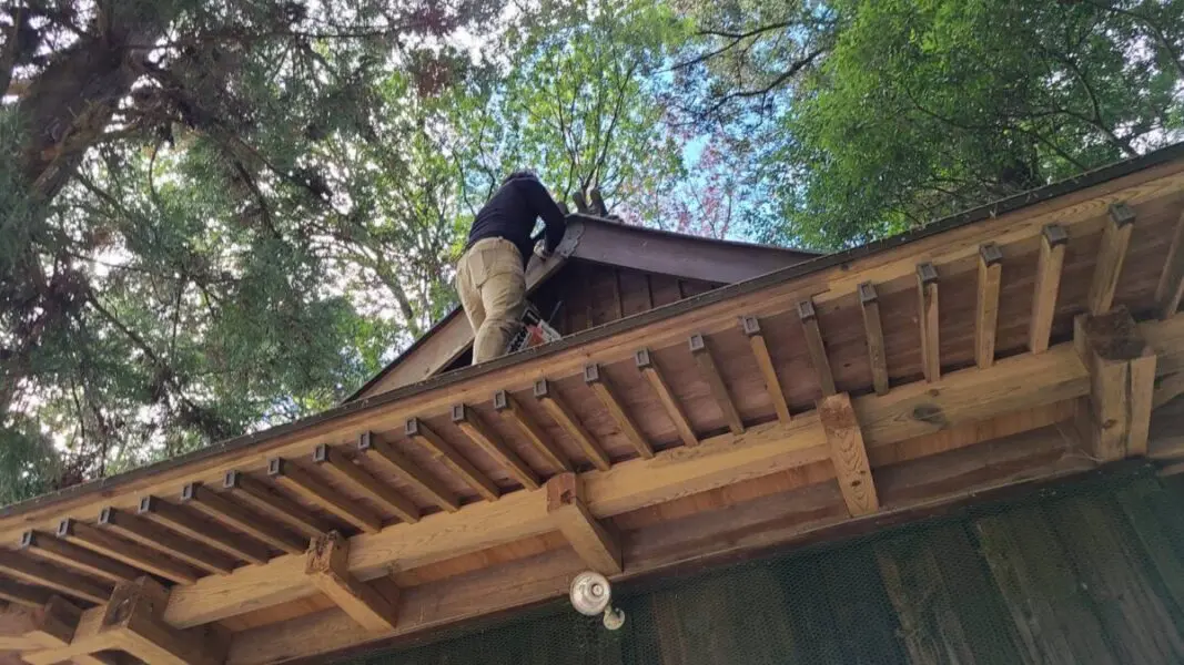 山梨県韮崎市の神明神社にて破風板などの木部塗装のボランティアを行わさせていただきました。