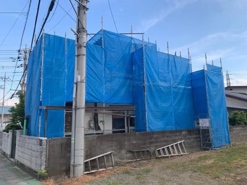 山梨県中巨摩郡昭和町のU様より外壁塗装工事のご依頼をいただきました。本日は足場設置と外壁塗装、軒天井の塗装をお伝えします。