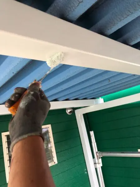 本日は鉄部の塗装作業をお伝えします。鉄部の塗装は下地処理の後に錆止めを塗ります。