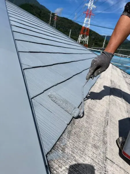 山梨県都留市の外壁・屋根塗装工事にて、本日は屋根塗装の下塗りをお伝えします!