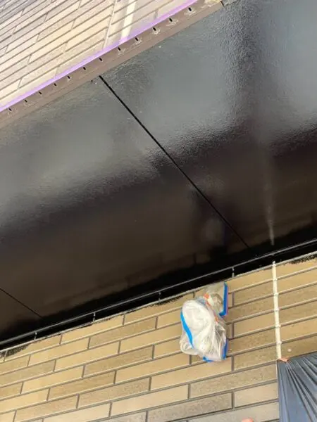 続いてベランダ下の軒天井の塗装です。一般的にホワイトで塗装されることが多いですが、こちらではブラックで塗装しました。
